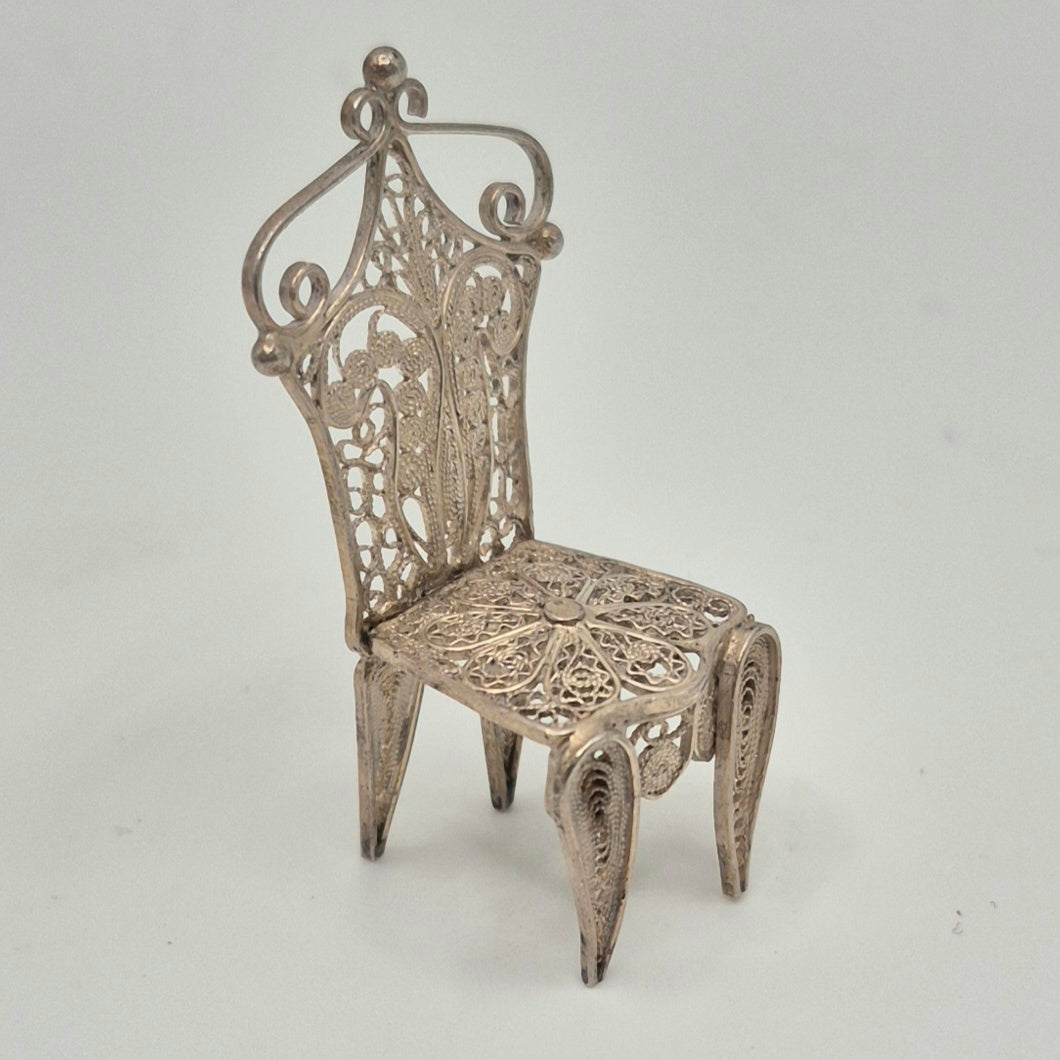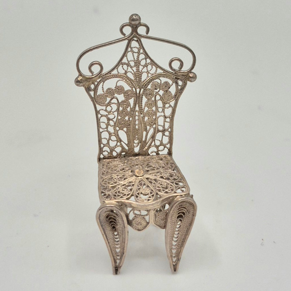 Sterling Silver Filigree Chair - 1/24 Scale Dollhouse Miniature