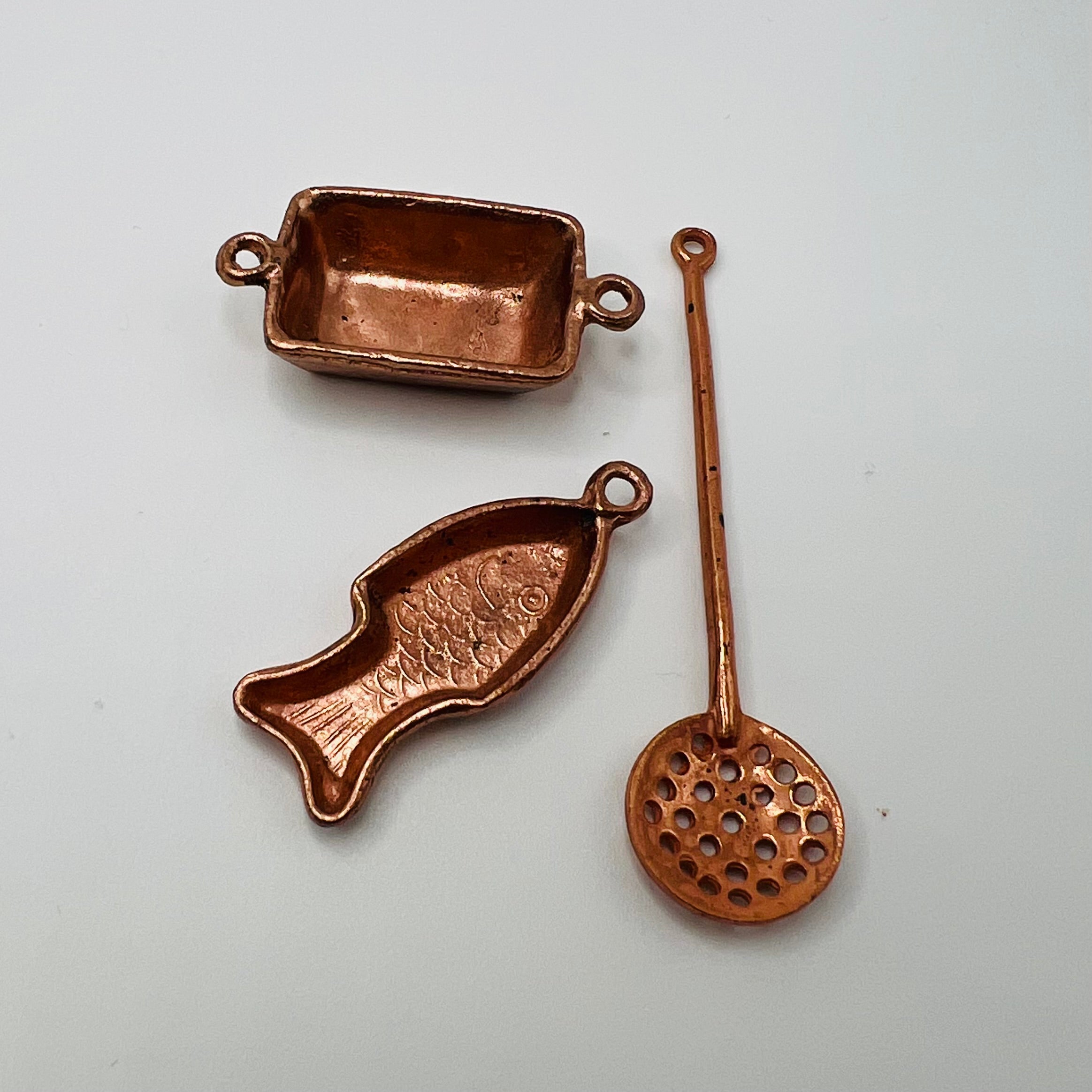 8 separate sets of brass/copper/cast iron kitchen utensils; all vintage!