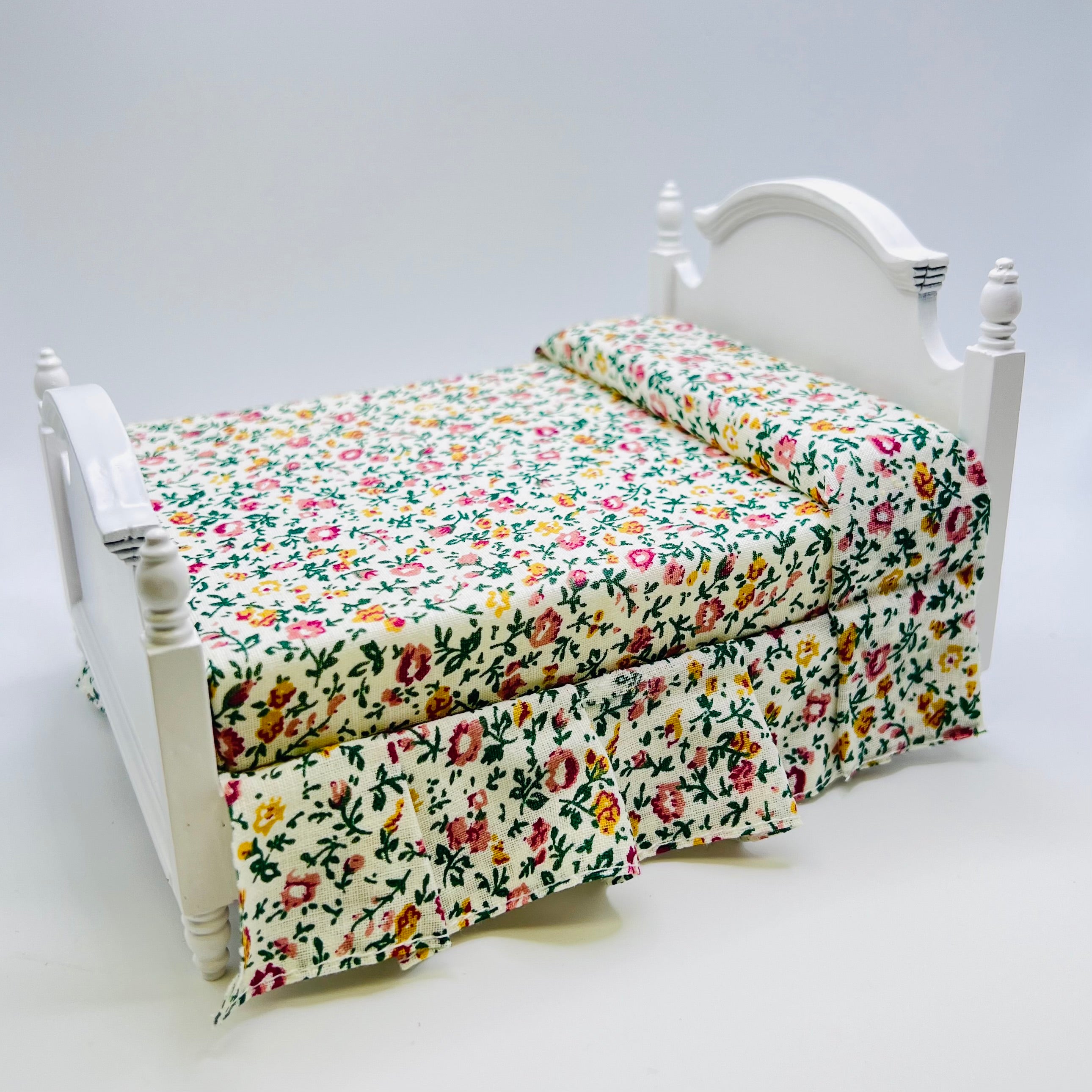 Double Bed - Off-White Floral Bedcovers - White - 1/12 Scale Dollhouse Miniature