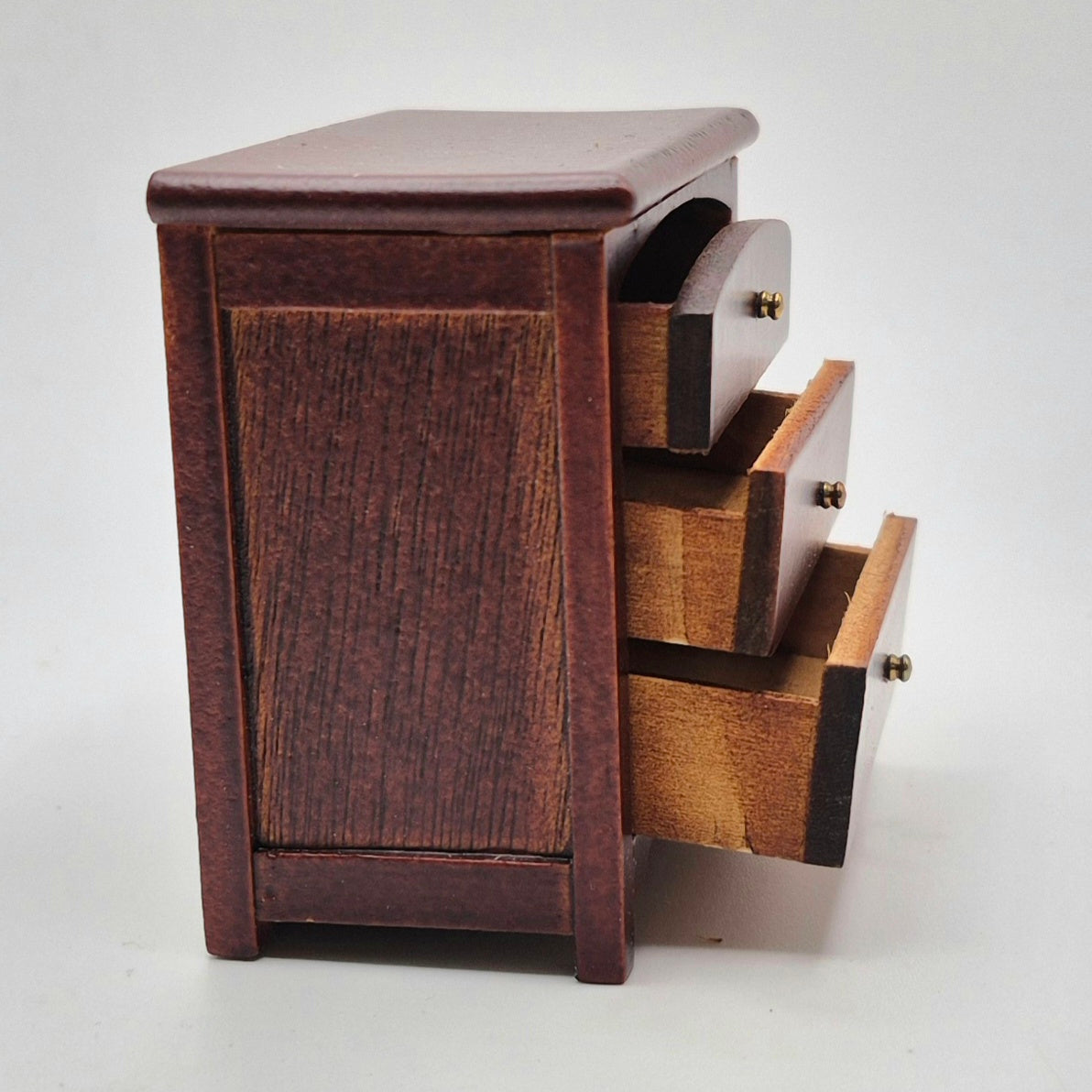 Walnut Nightstand with 3 Drawers - 1/12 Scale Dollhouse Miniature