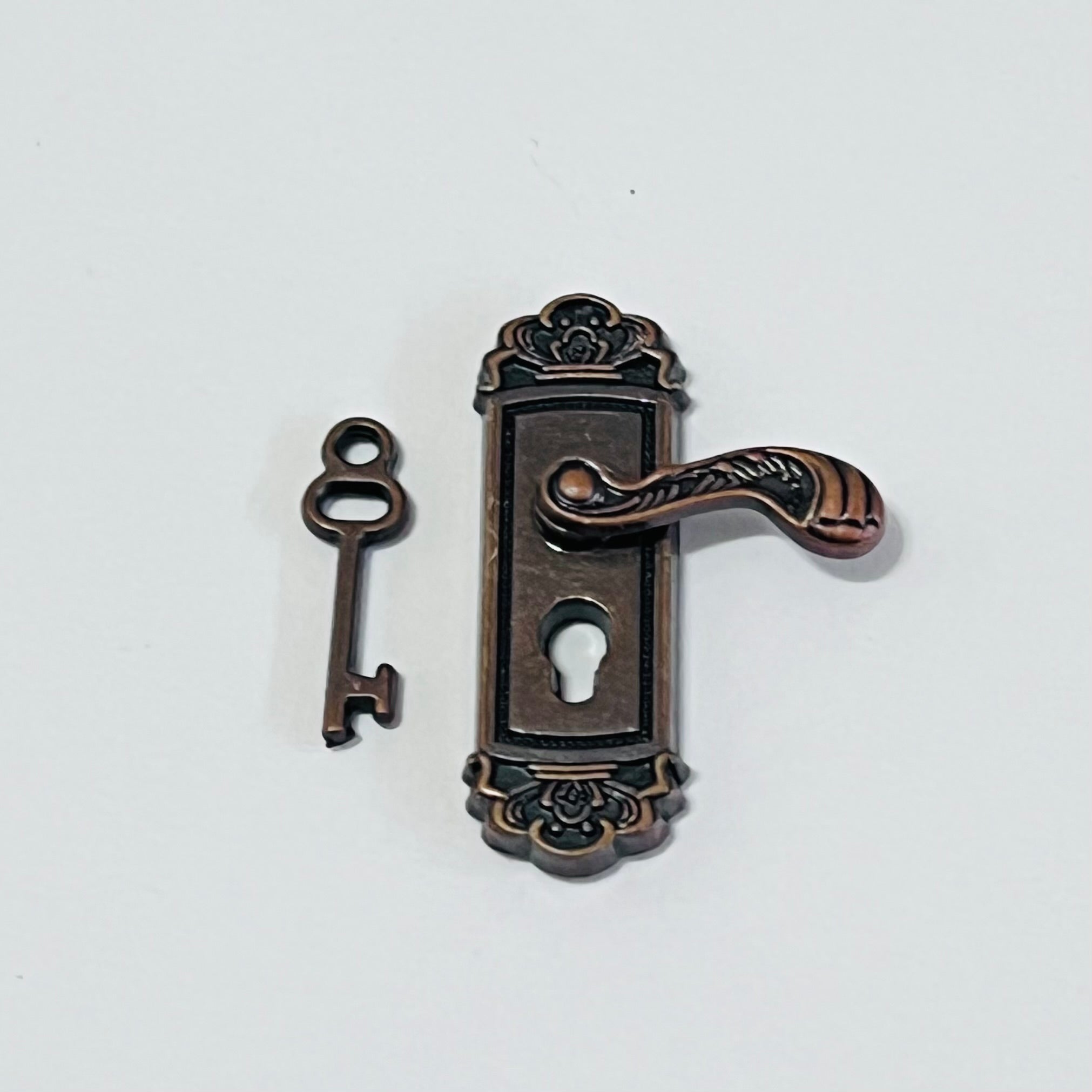 Door with handle on the right side (and key) for the front door. 7/8" x 5/16".. 1/12 scale miniature for dollhouse or diorama.