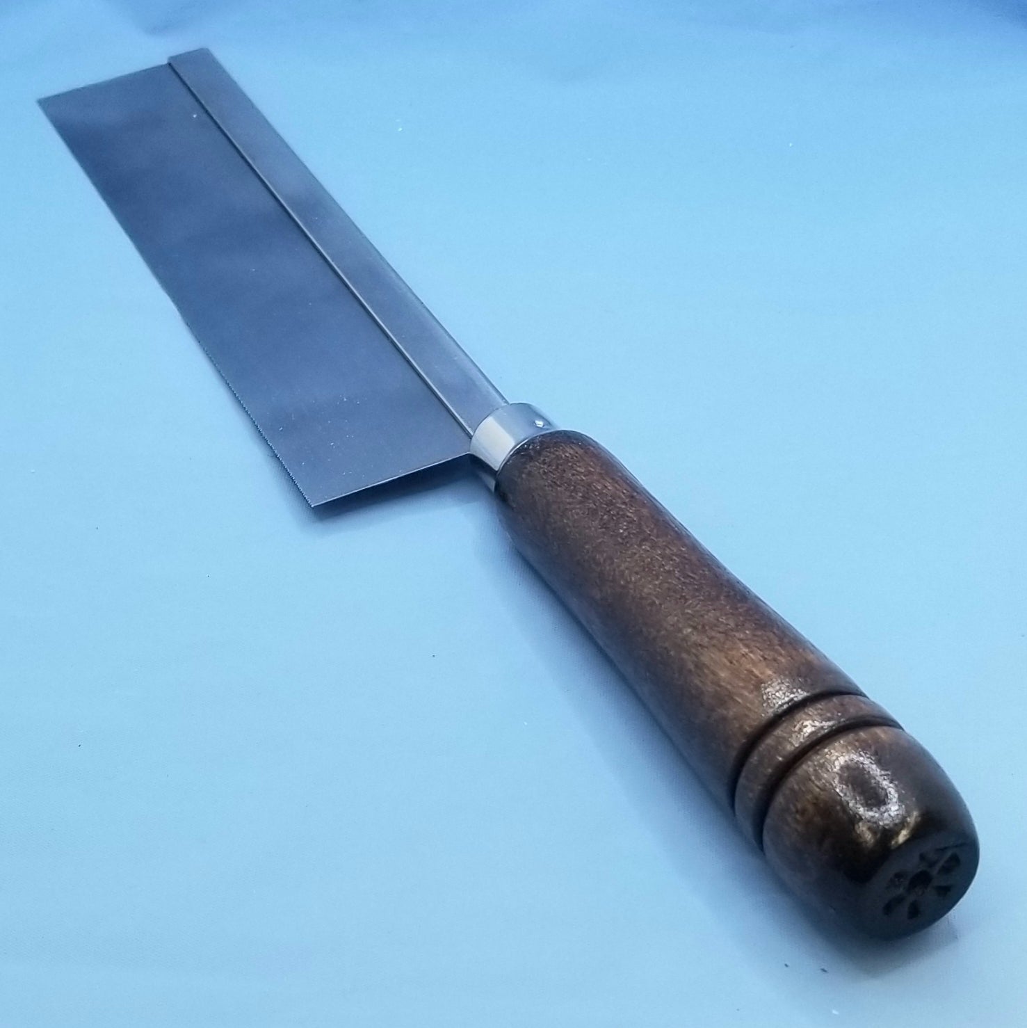 Fine kerf razor saw by Zona with a comfortable wooden handle. This saw has 24 teeth per inch (TPI). The overall length is 11" (including handle) with a cutting length of 6 1/2" and cutting depth of 1 3/16". The blade is .010" thick. Need a mitre box to go with the saw?