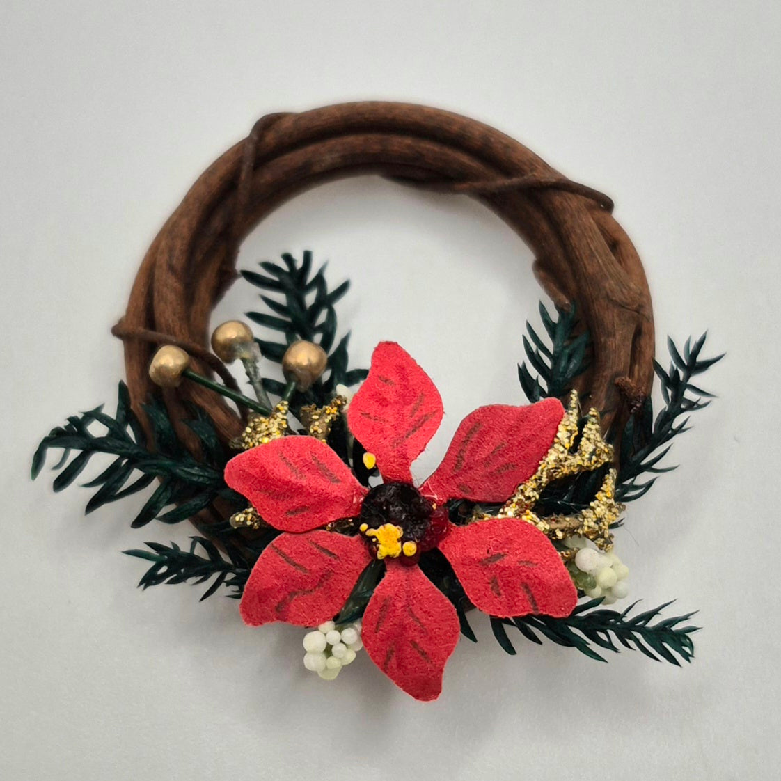 Christmas Wreath - Grape Vine & Poinsettia - 1/12 Scale Dollhouse Miniature