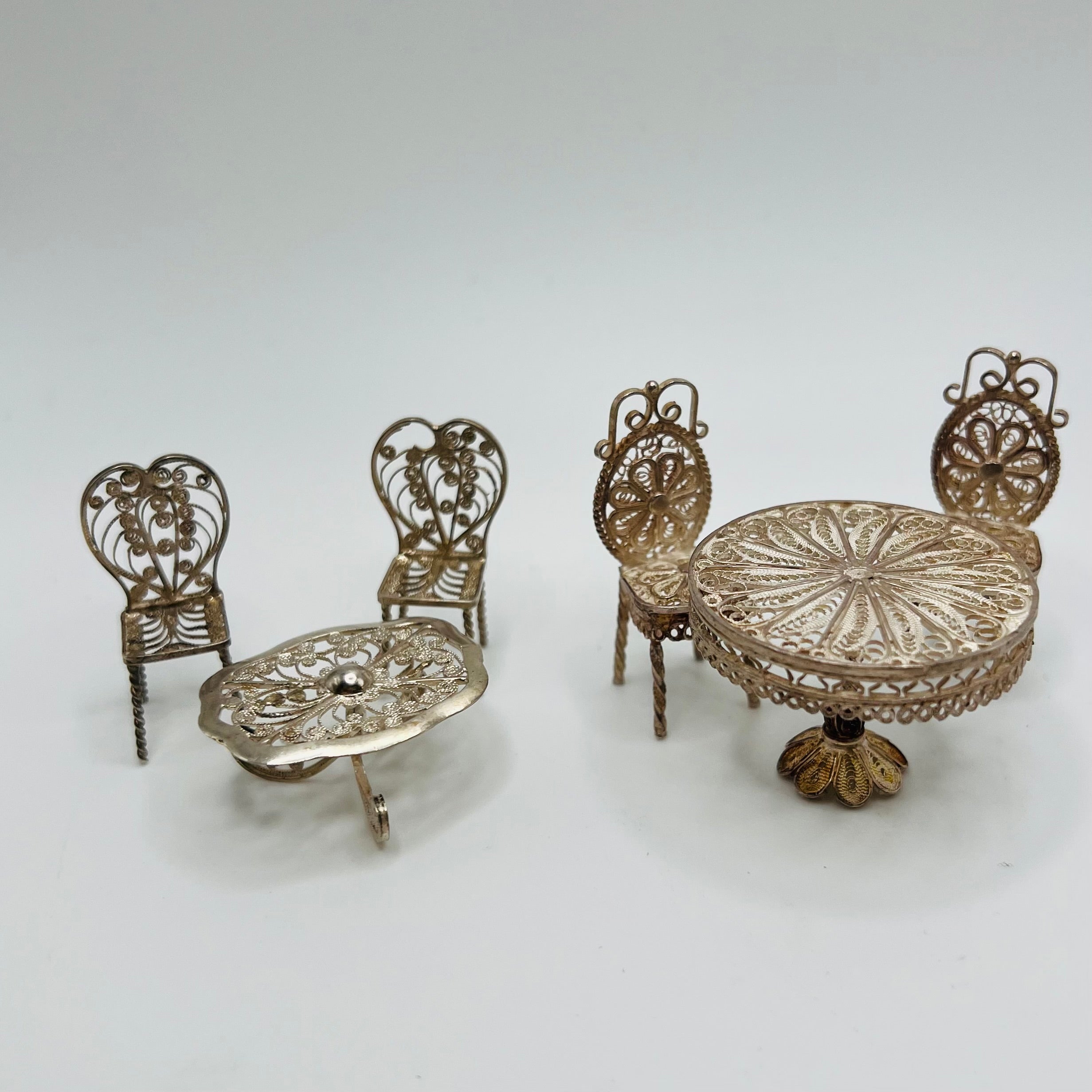 Two Sets of Sterling Silver Filigree Table and Chairs.