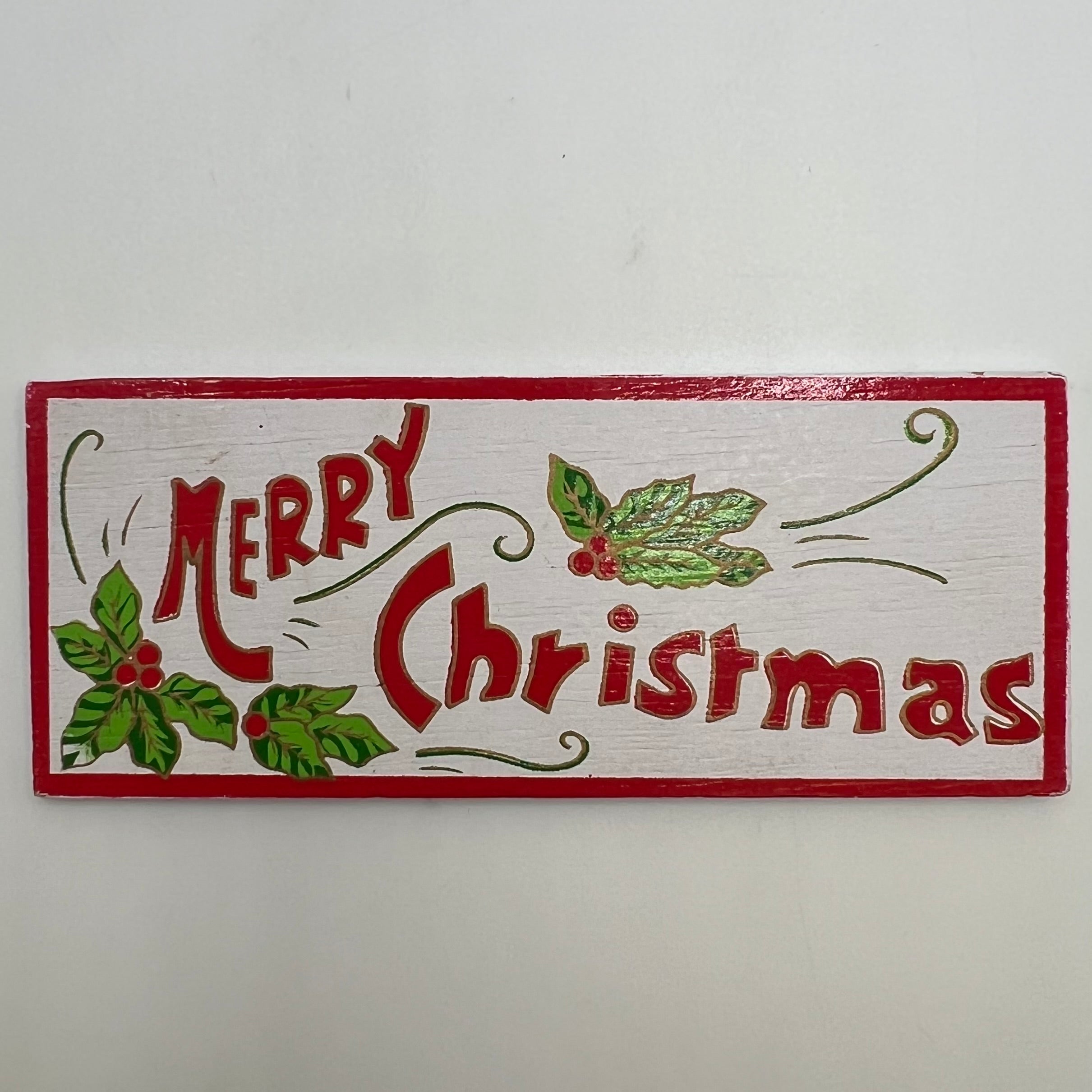 A beautiful painted wooden sign saying Merry Christmas. 1/12 scale miniature. 1 5/8" high x 4" wide.