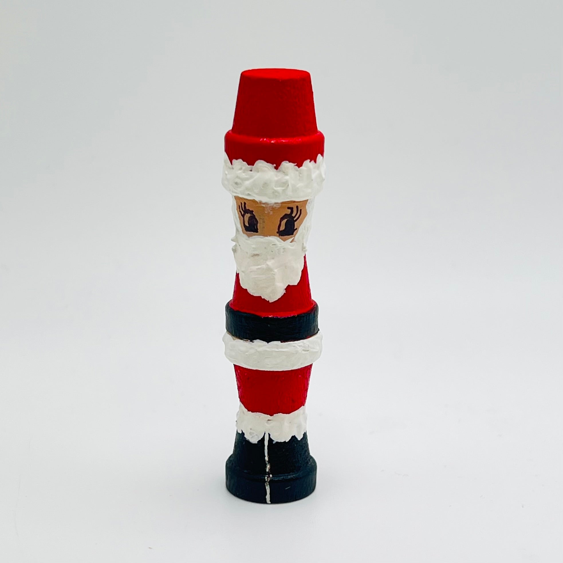 Figurine of Santa made of stacked flowerpots painted. Great for your garden or festive display in your 1/12 scale dollhouse or diorama. 2 3/4"