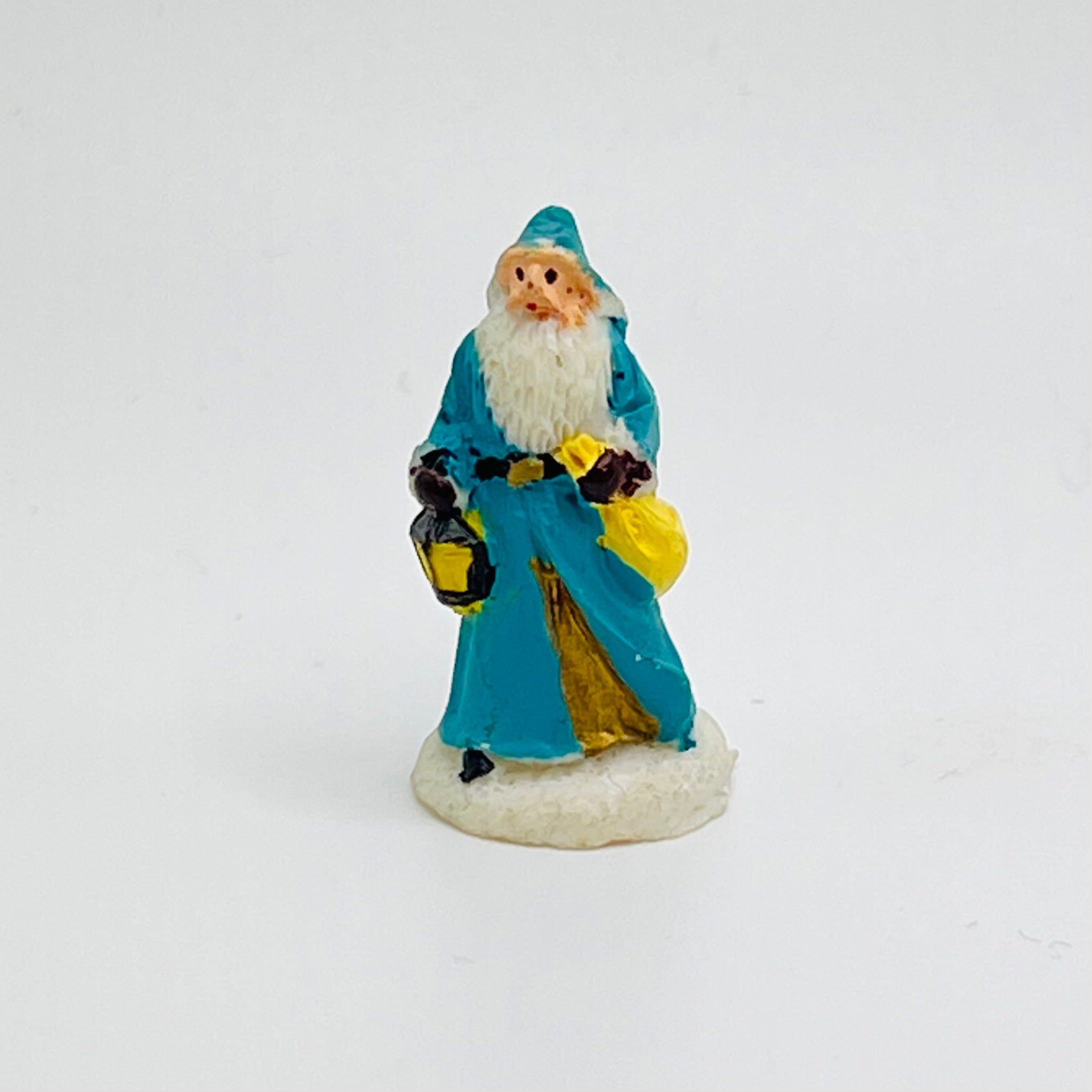 Figurine of Saint Nick holding a gift. Great for your festive display in your 1/12 scale dollhouse or diorama. 1 1/8"