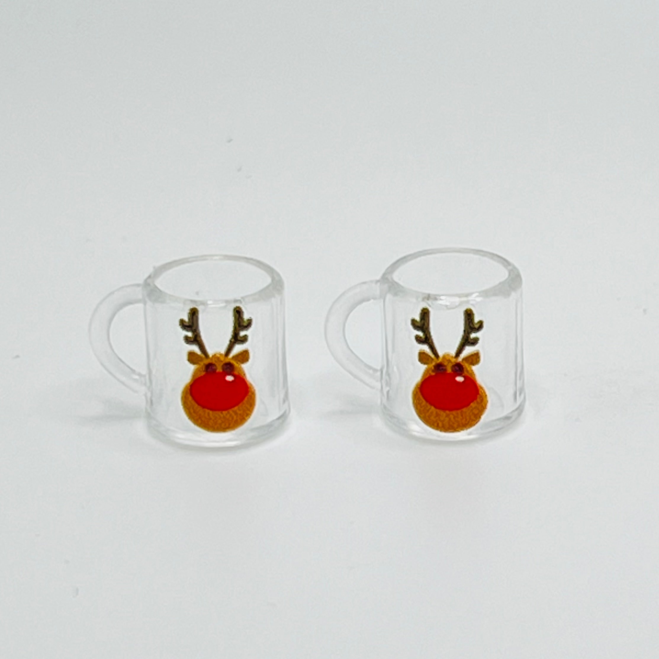 Two Christmas Mugs - Reindeer - 1/12 Scale Dollhouse Miniature