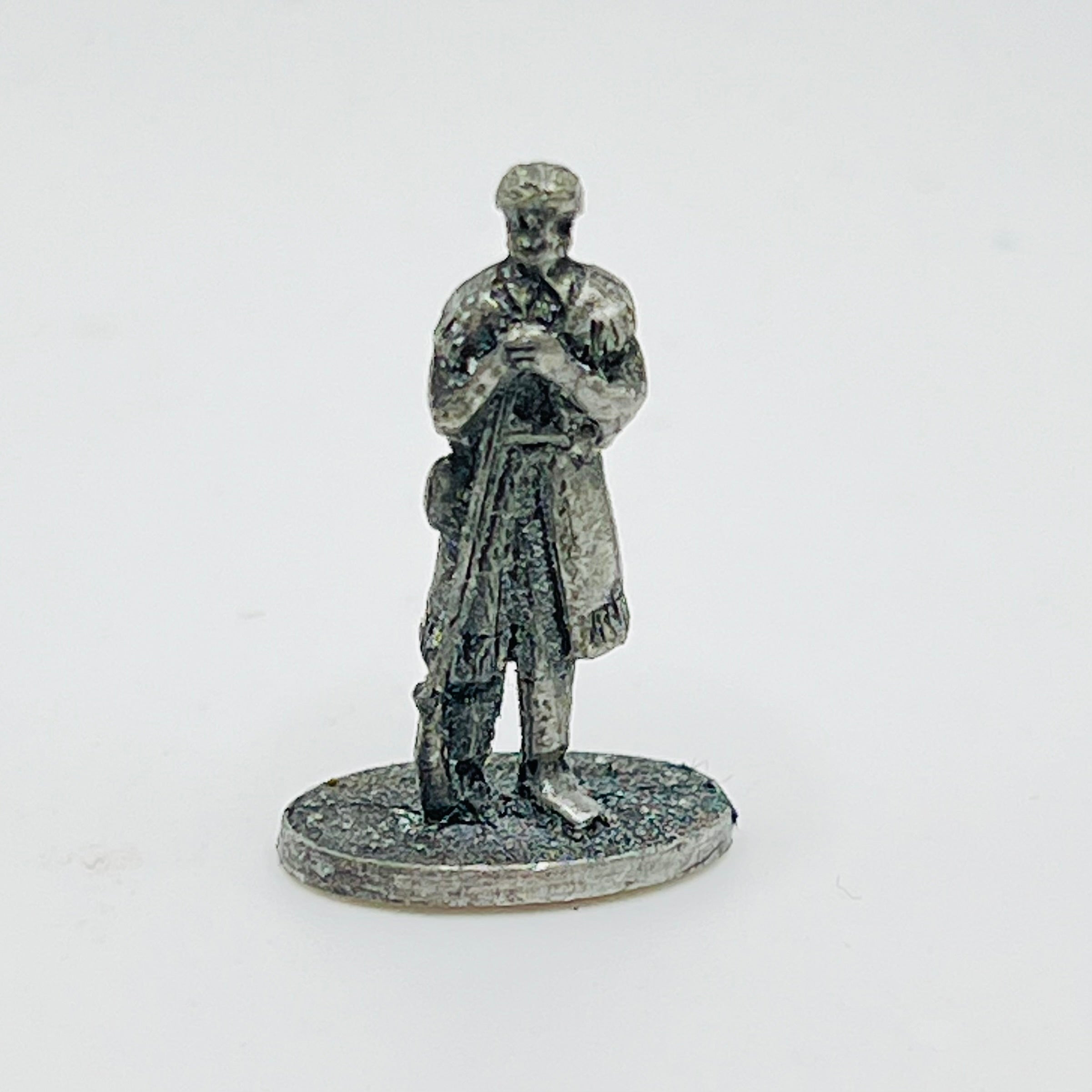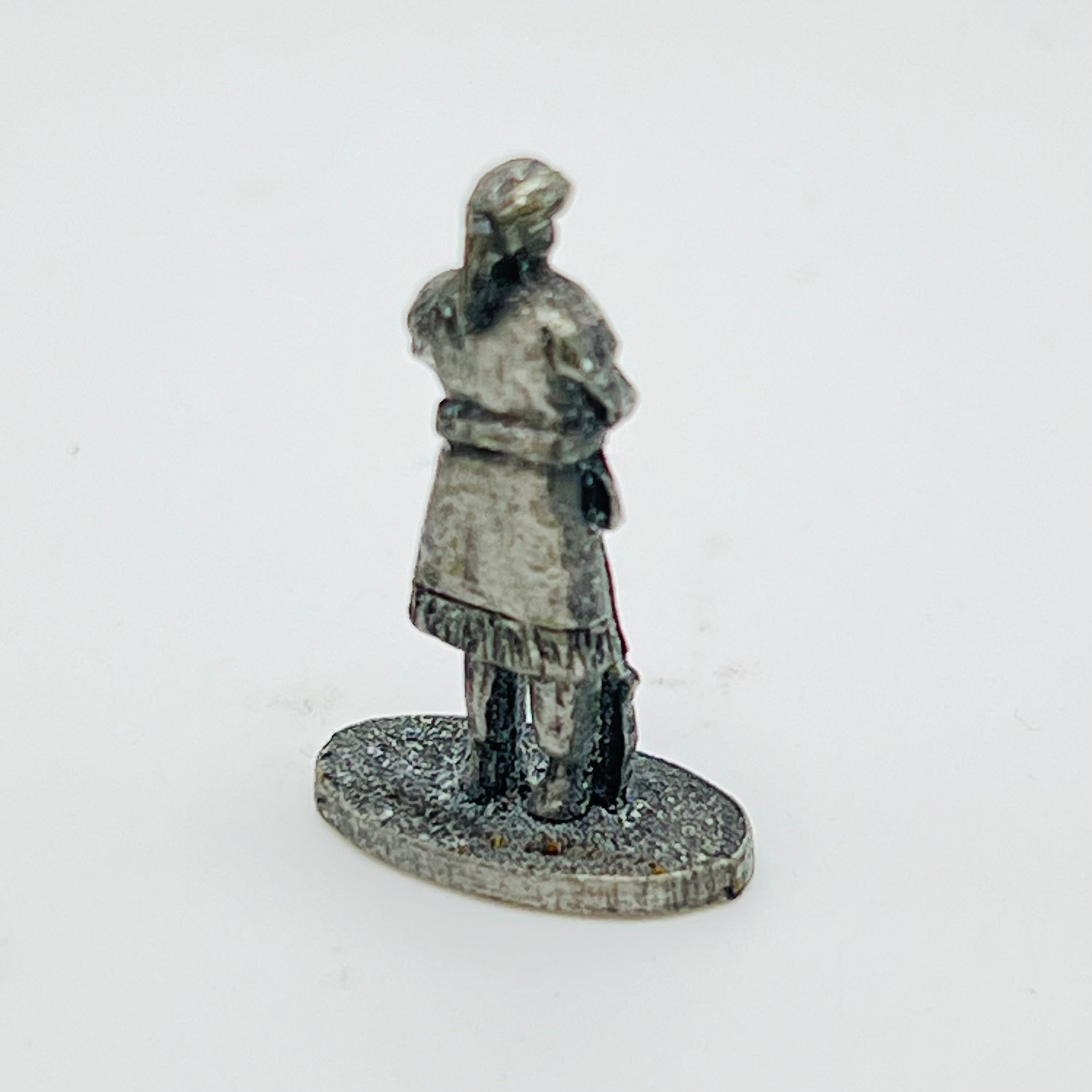Figurine of a mountain man (Daniel Boone) in metal. Complet with the racoon pelt hat and the musket. Great for display in your 1/12 scale dollhouse or diorama. 1 1/16" tall
