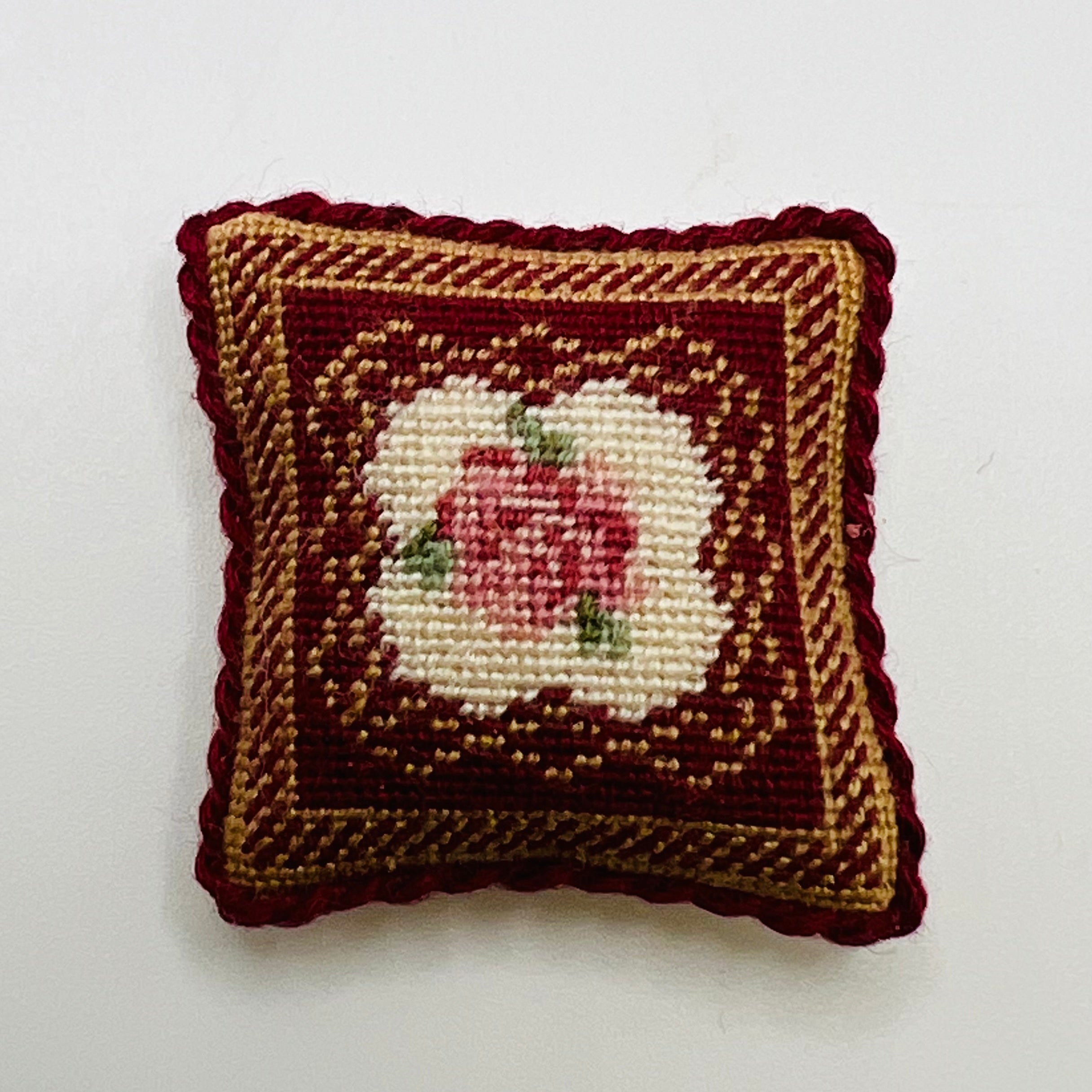 Handmade Petit-Point Pillow - 1/12 Scale Dollhouse Miniature