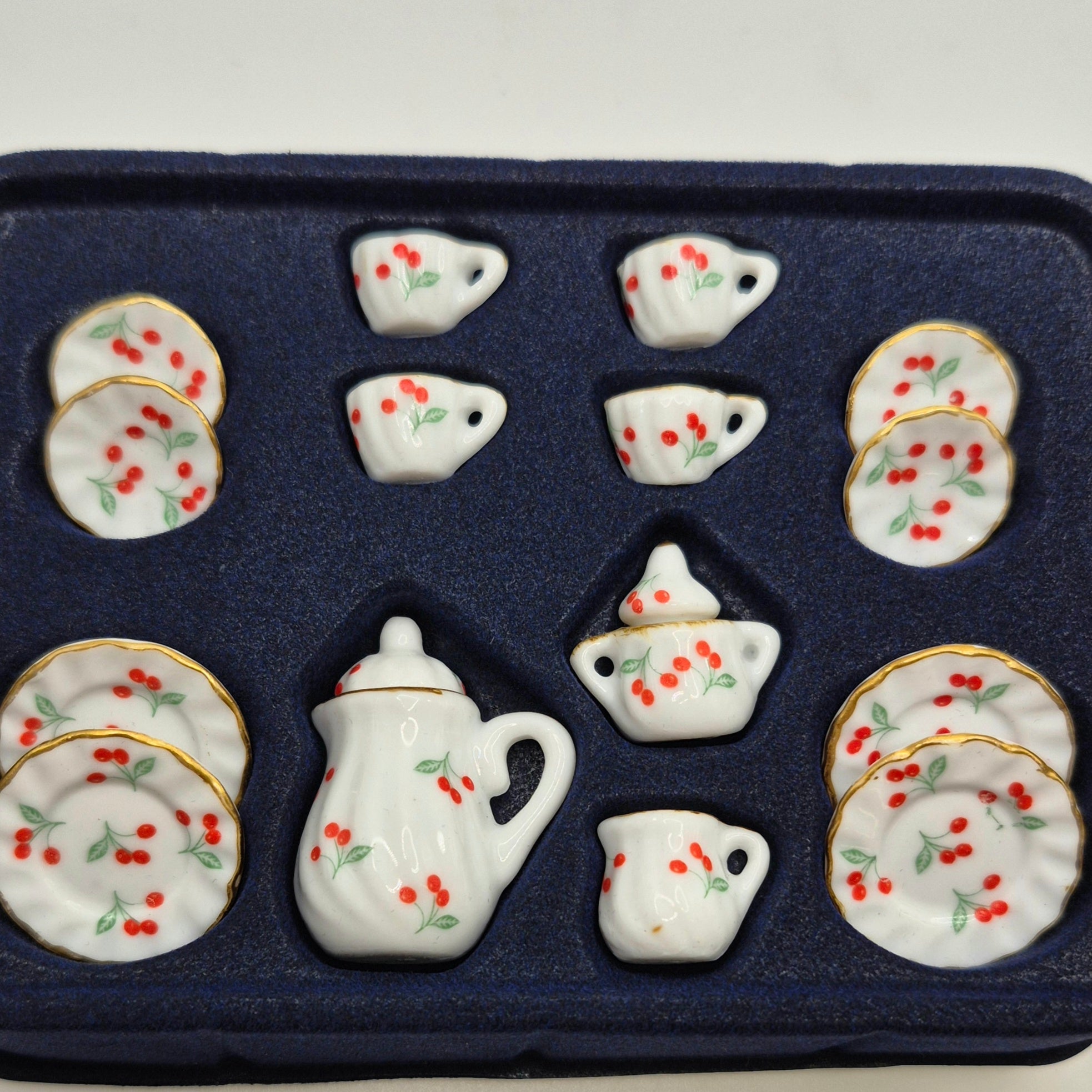 Ceramic Red Flowers Tea Set - 17 Pieces - 1/12 Scale Dollhouse Miniature