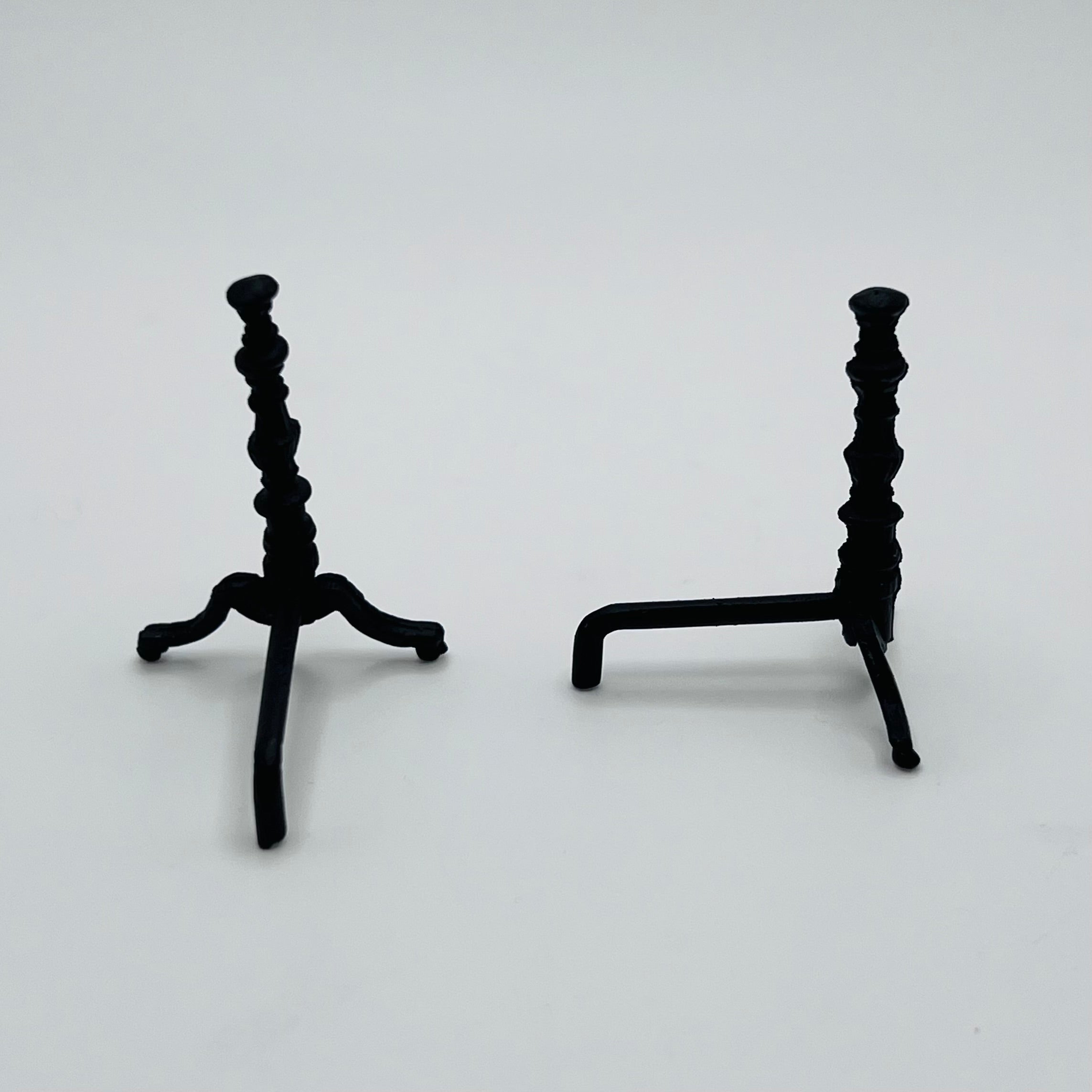 Pair of Black Andirons for Fireplace - 1/12 Scale Dollhouse Miniature
