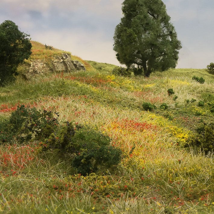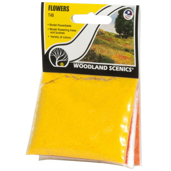 Yellow, white, orange and red flowers. Use to model realistic flowerbeds, flowering trees, bushes and vines. 4 bags/package - 1.8 in³ (29.4 cm³) per bag