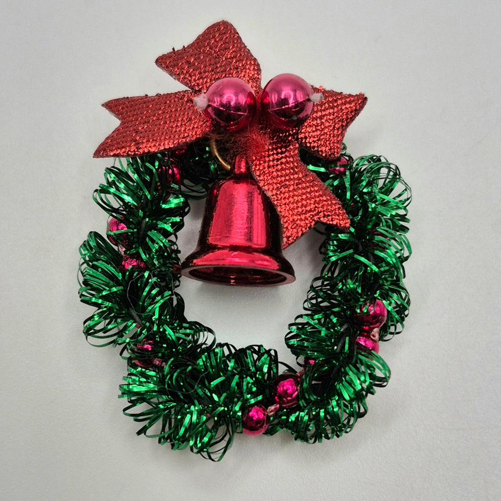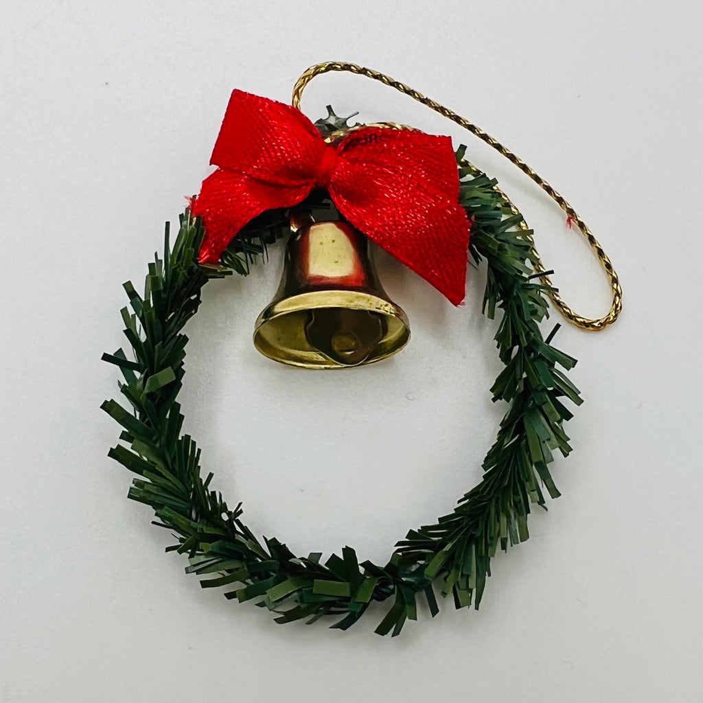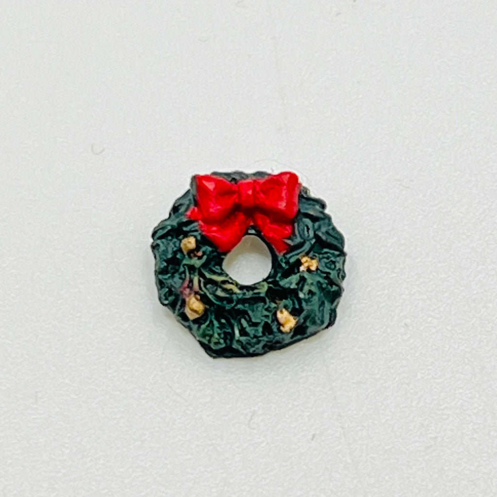 Christmas Wreath - Greenery/Pine Cones/Gold and Bow - 1/12 Scale Dollhouse Miniature