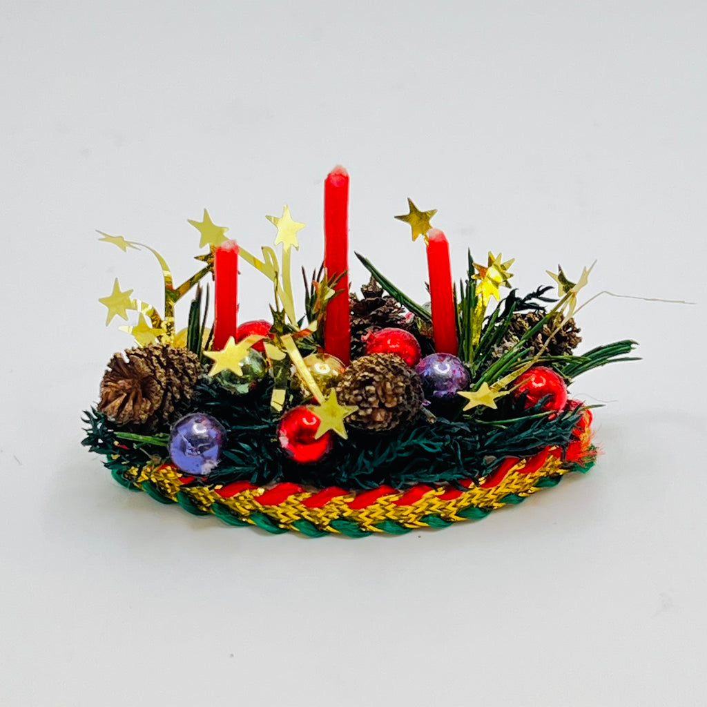 Christmas Wreath - Greenery/Pine Cones/Fruits and Bow - 1/12 Scale Dollhouse Miniature