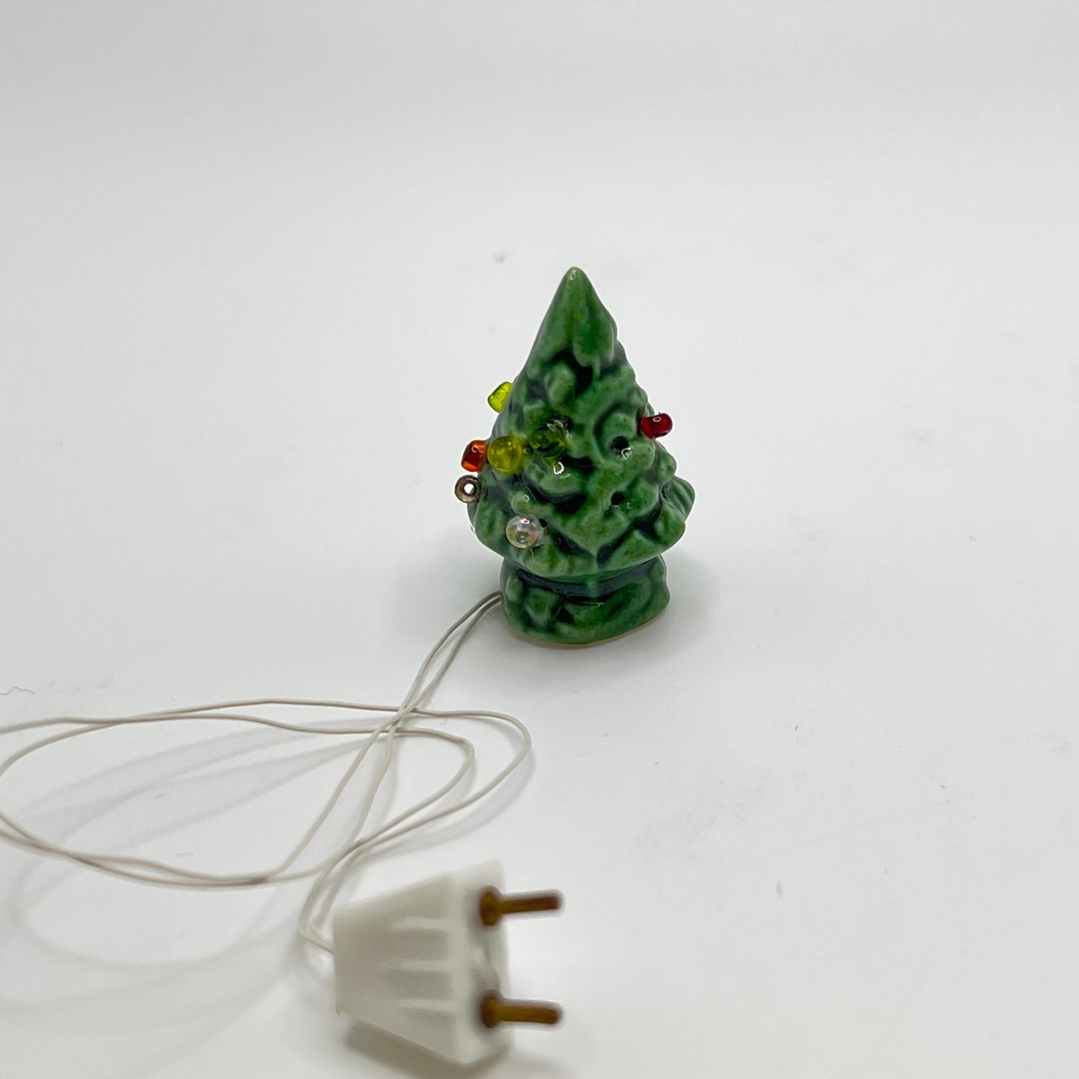 A unique ceramic Christmas tree that lit up.   It will add a very festive touch to your Holiday decor. 1 1/8" tall
