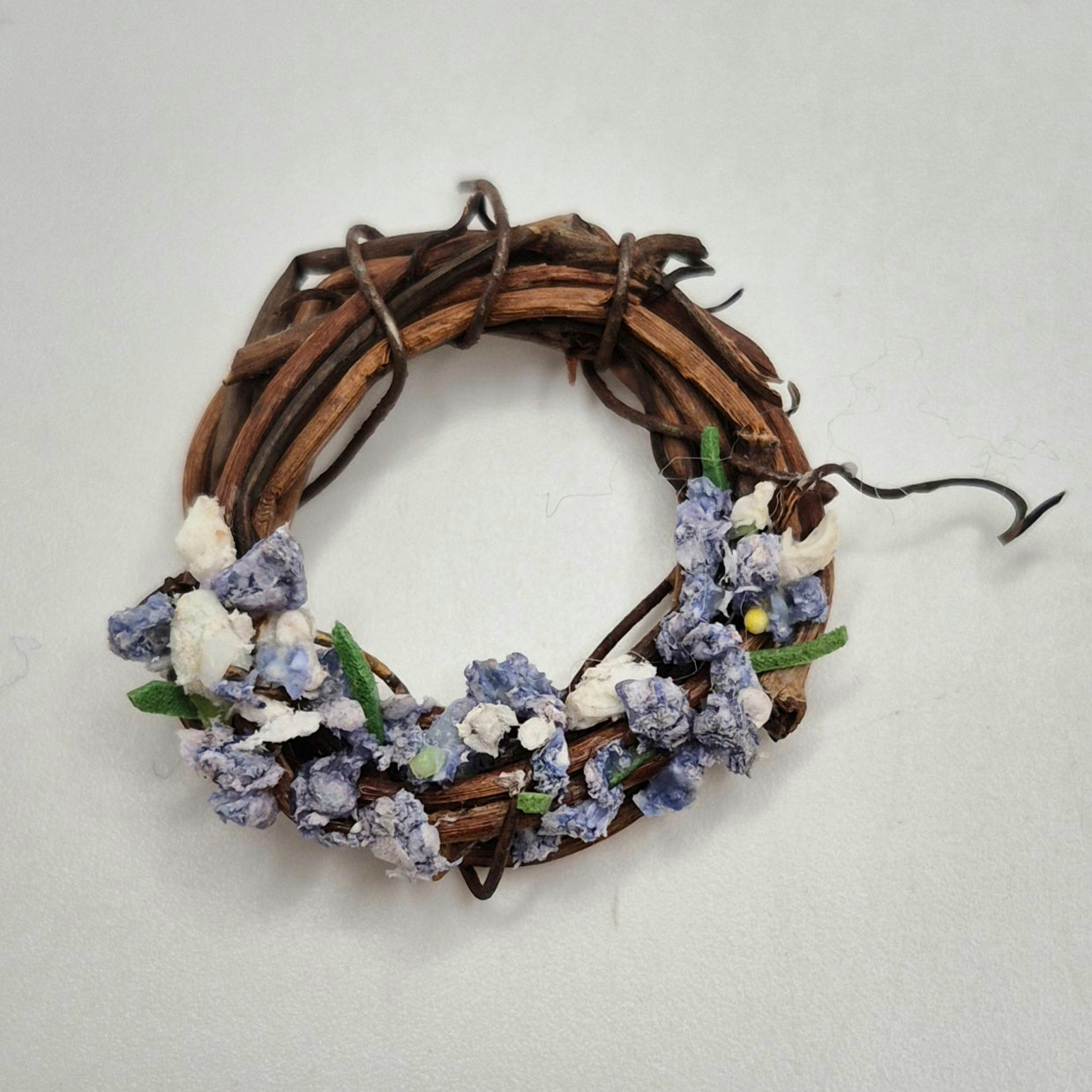 Christmas Wreath - Blue & White Flowers - 1/12 Scale Dollhouse Miniature