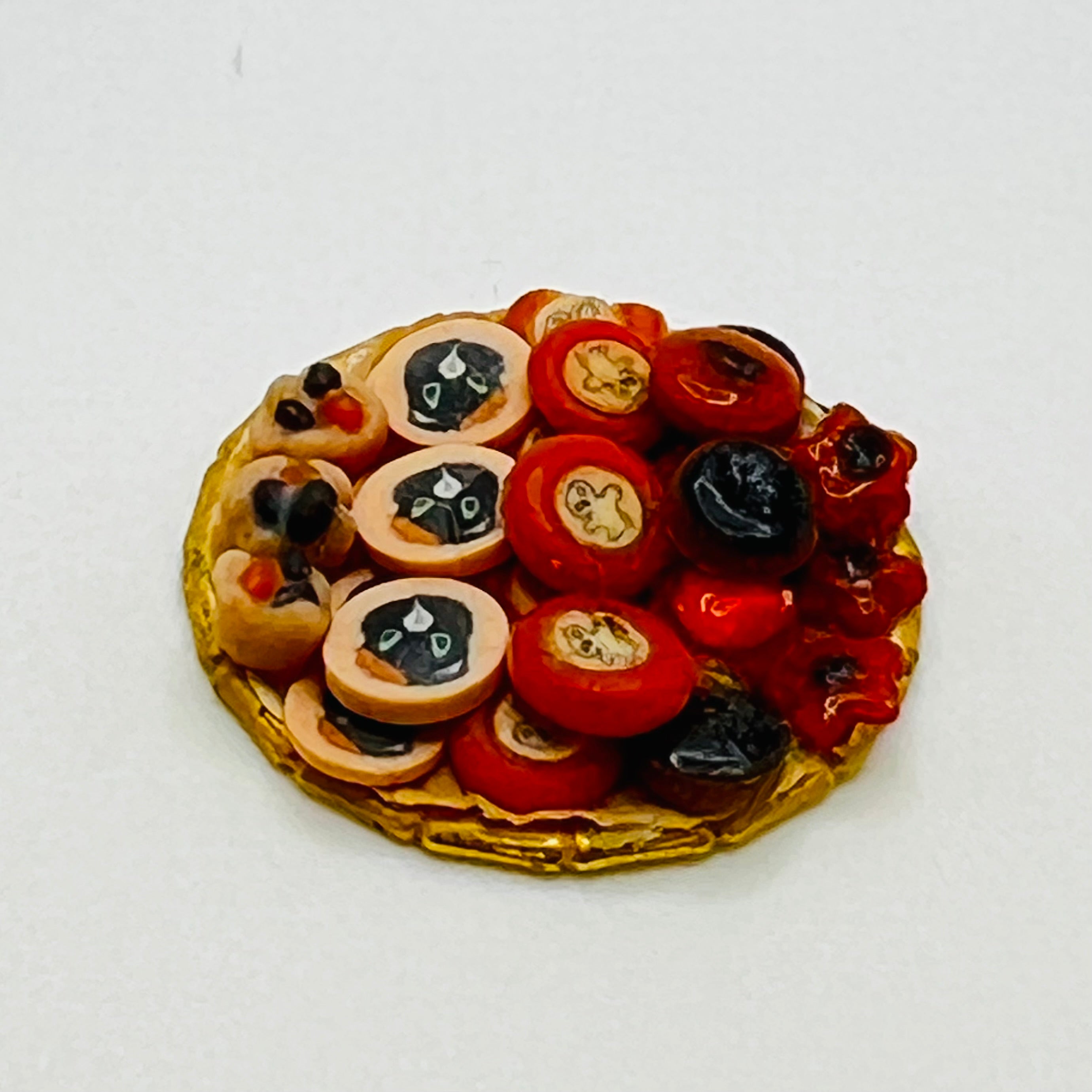 A metal plate of cookies with Halloween in mind. 1/12 scale miniature that will bring an amazing level of detail to your dollhouse or diorama kitchen. 7/8" diameter.
