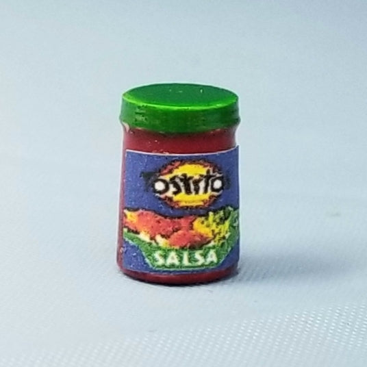 1/12 scale jar of Tostitos Salsa. The real thing! Licensed for use of name and image. Miniature resin jar with painted lid and paper label.