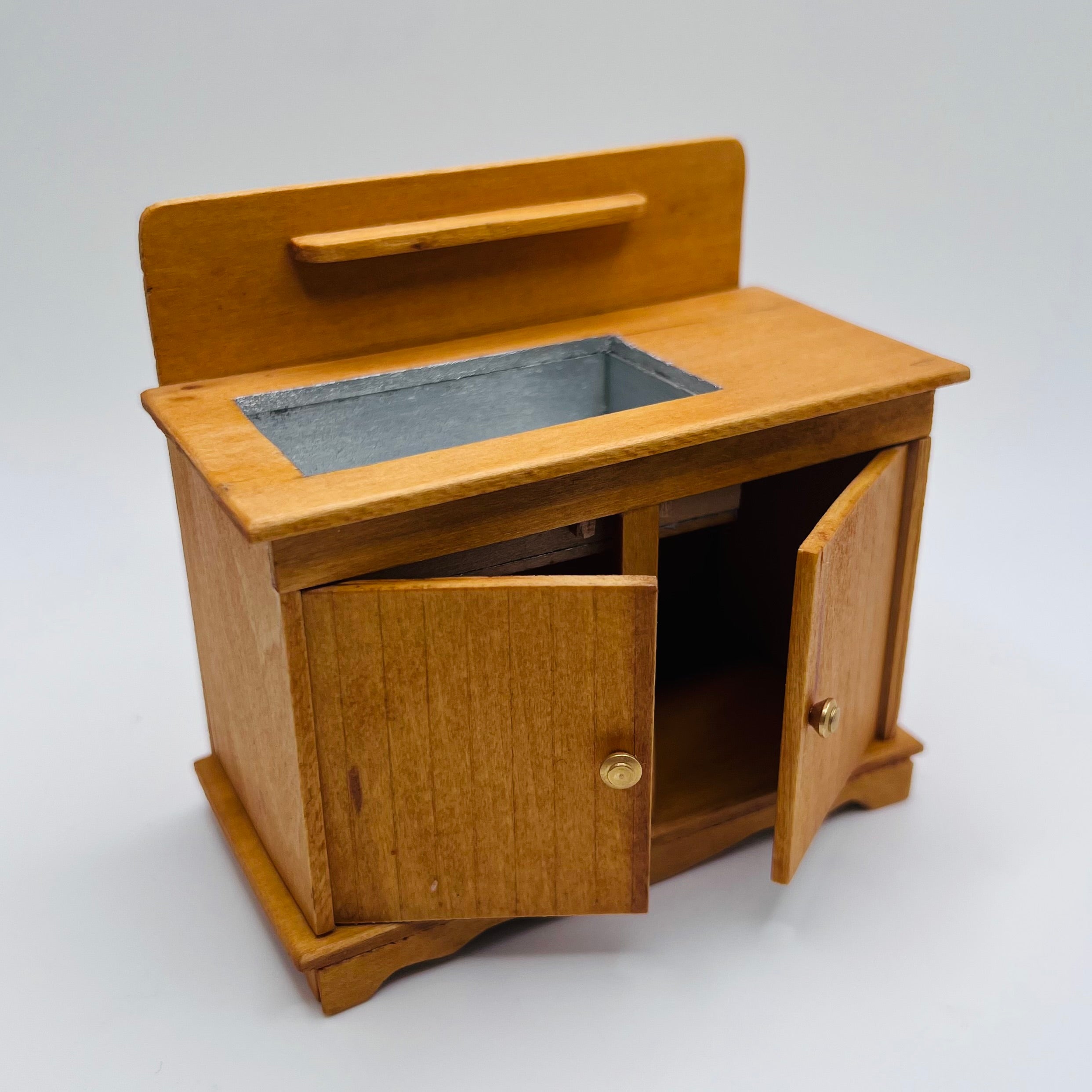 Versatile kitchen counter with two working doors. Create the look that fits your 1/12 scale dollhouse or diorama kitchen. 3 1/2" high x 3 3/4" wide x 1 15/16" deep.