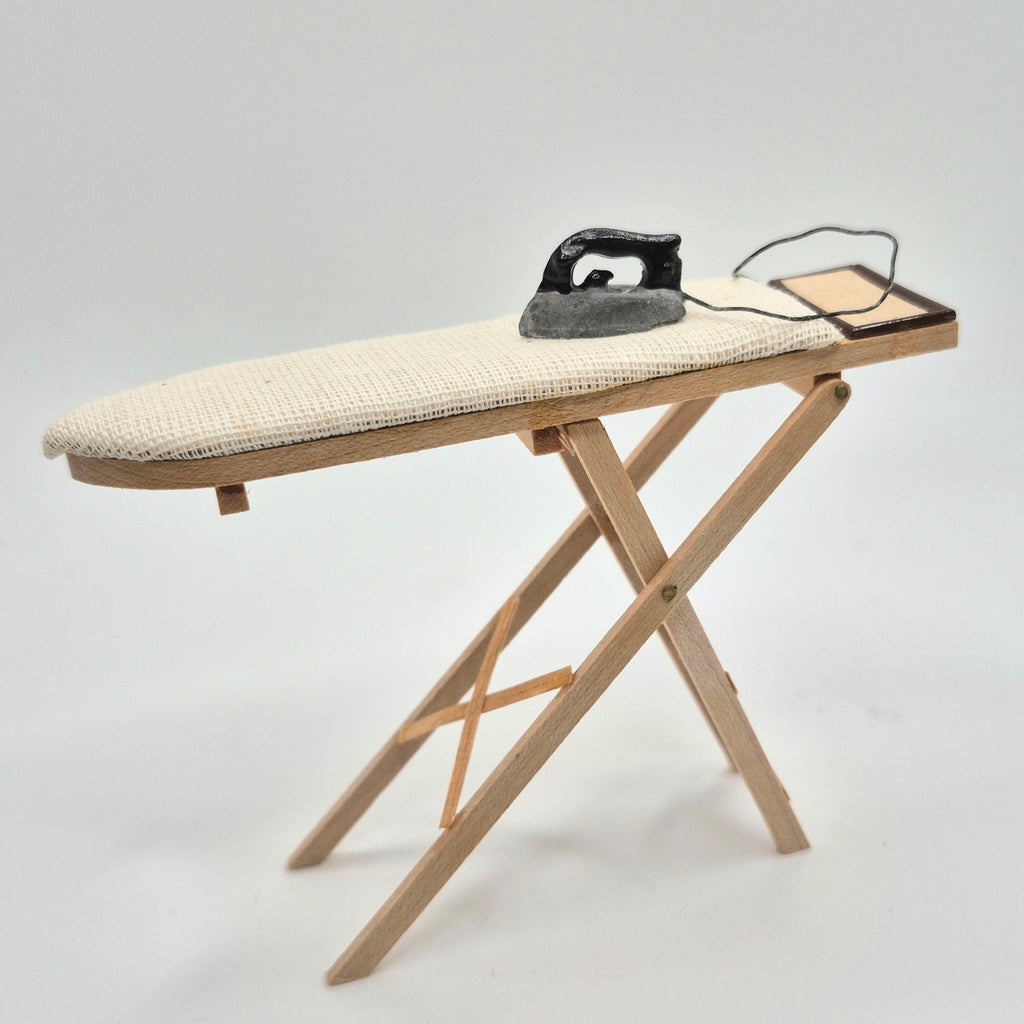 Folding Style Ironing Board with Iron - Vintage Handmade - 1/12 Scale Dollhouse Miniature