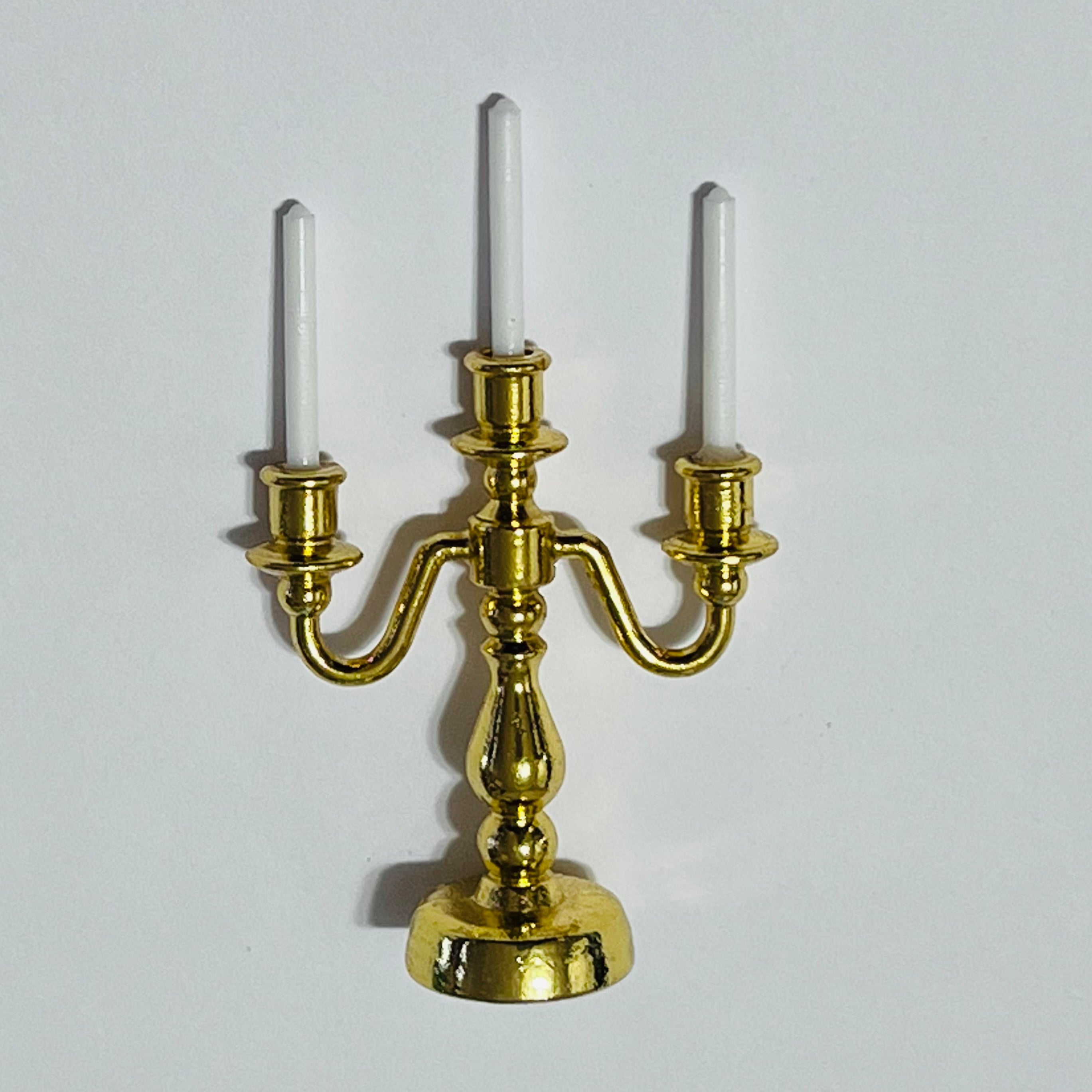 3-Arm Gold Candelabra with White Candles - 1/12 Scale Dollhouse Miniature