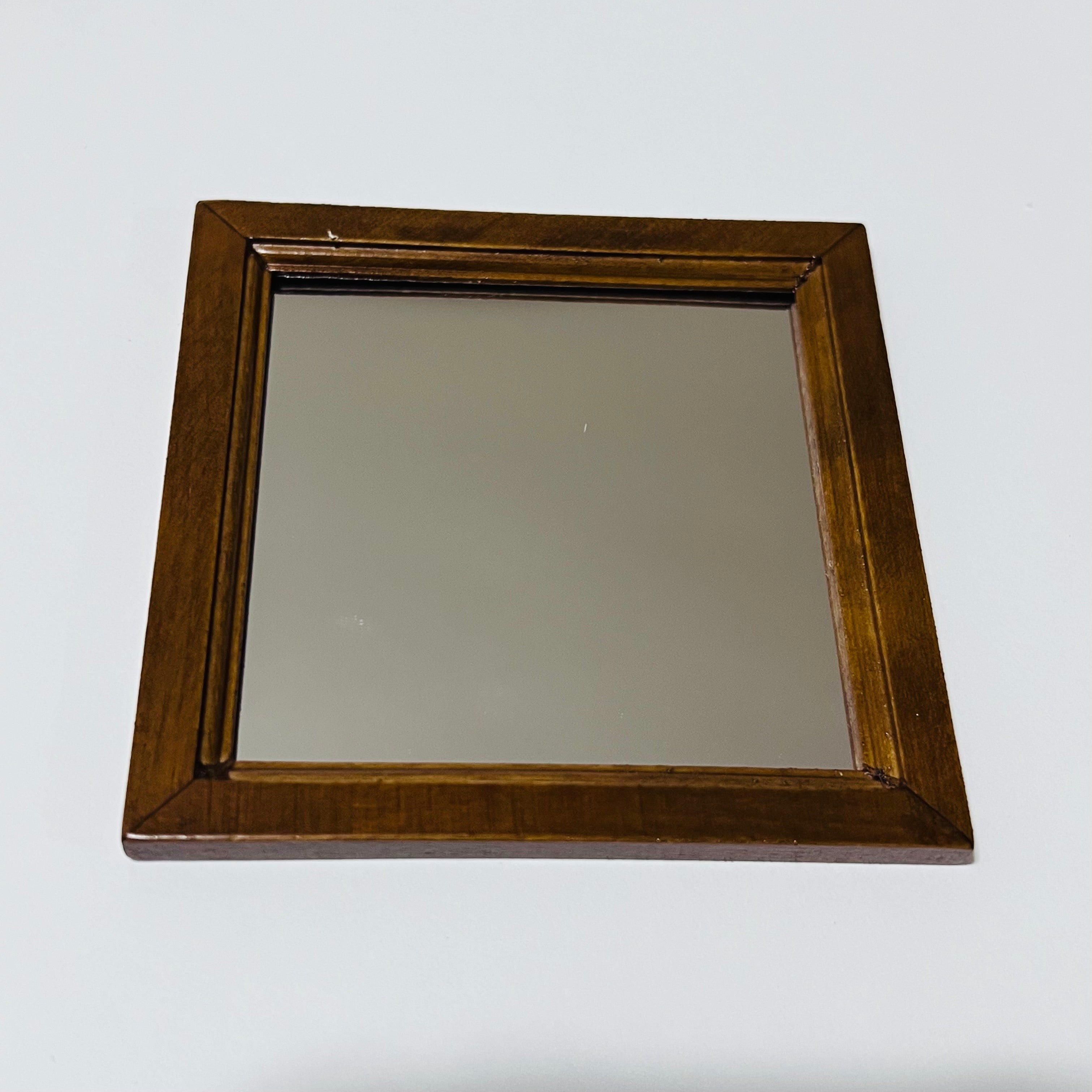 Large 3 1/2 inch square wall mirror. Walnut. 1/12 scale dollhouse miniature.