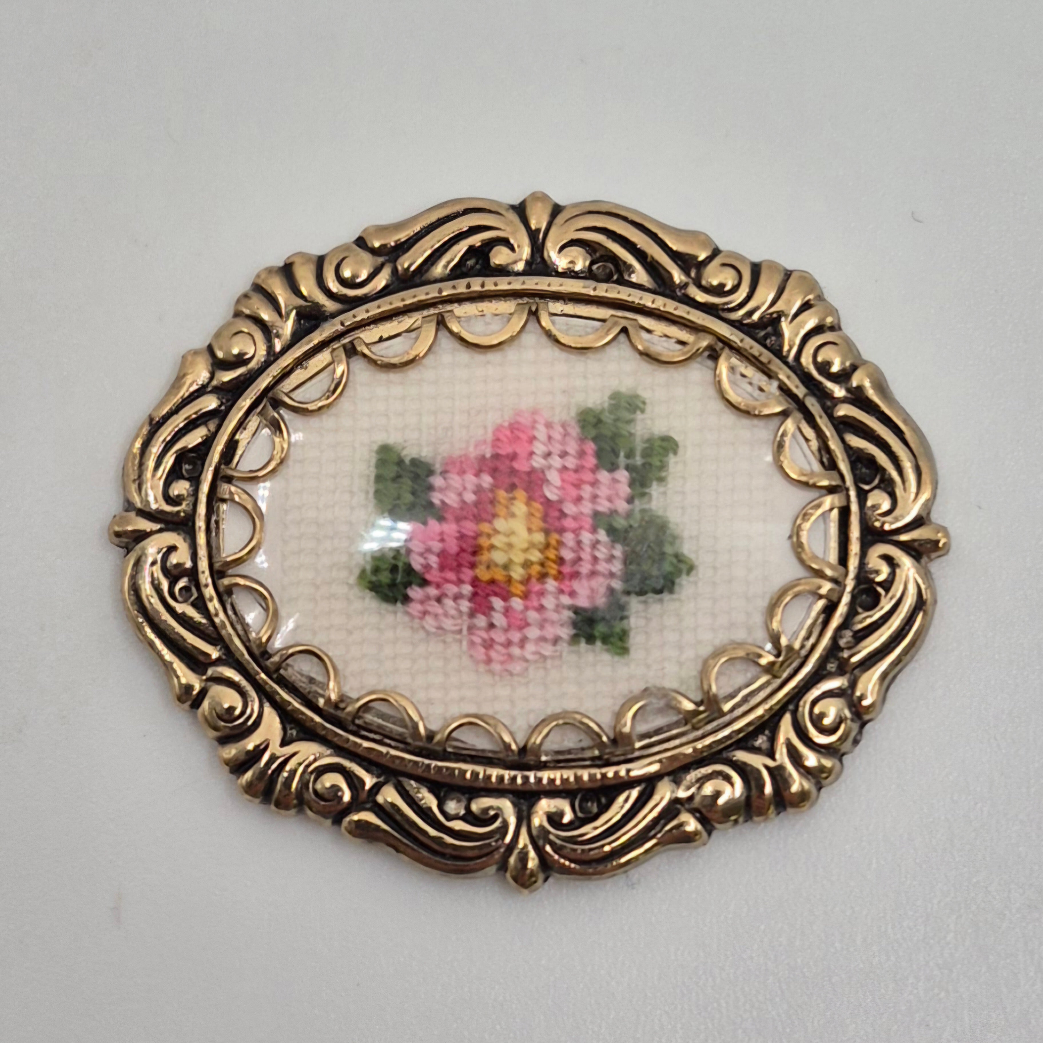 Petit Point Rose in Frame for Display - 1/12 Scale Dollhouse Miniature