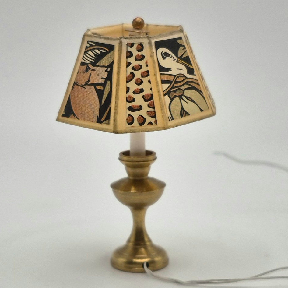 Wildlife Motif Table Lamp - 12 Volt - 1/12 Scale Dollhouse Miniature
