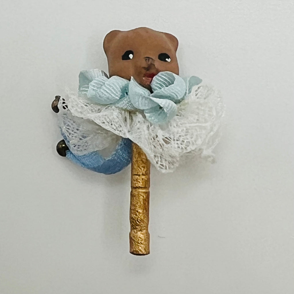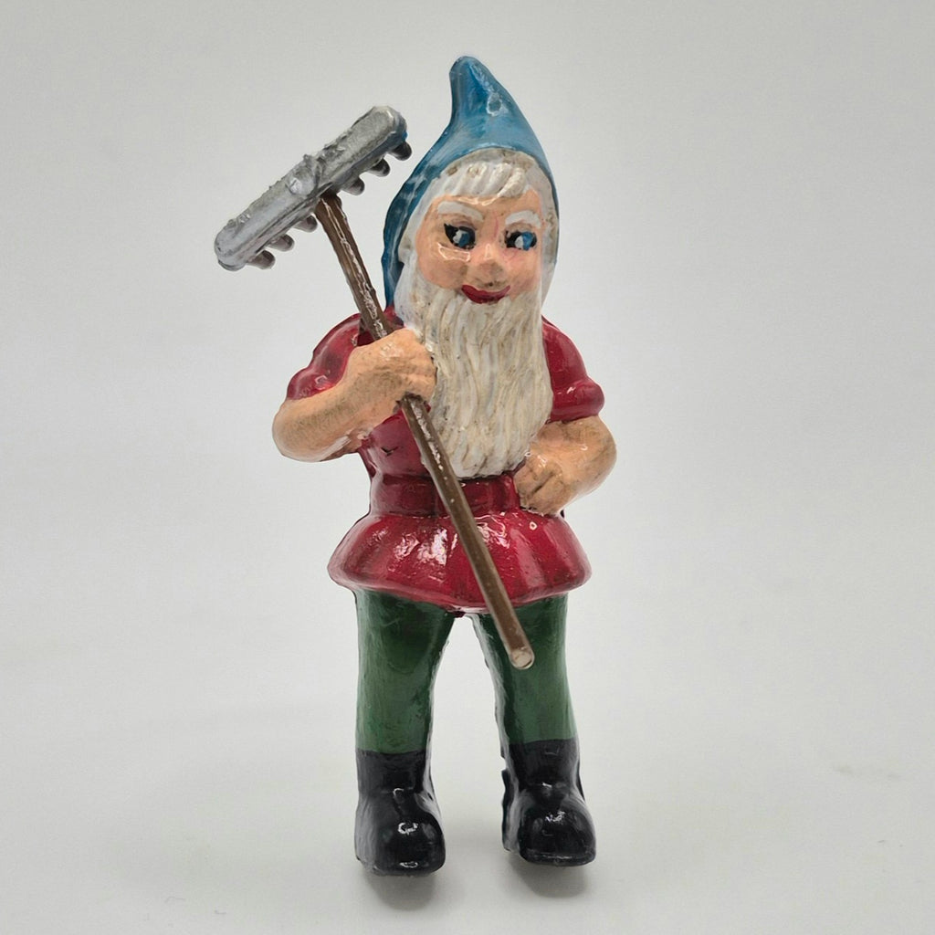 Vintage Painted Plastic Gnome with Rake - 1/12 Scale Dollhouse Miniature