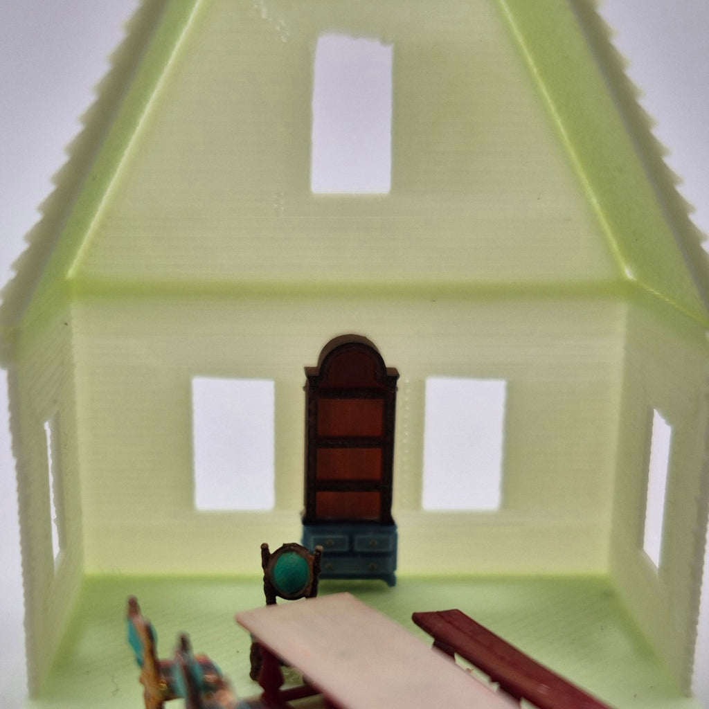 Harvest Table, Bench, Chairs, Hutch - 3D Printed Kit - Ivette Orellana - 1/144 Scale Dollhouse Miniature