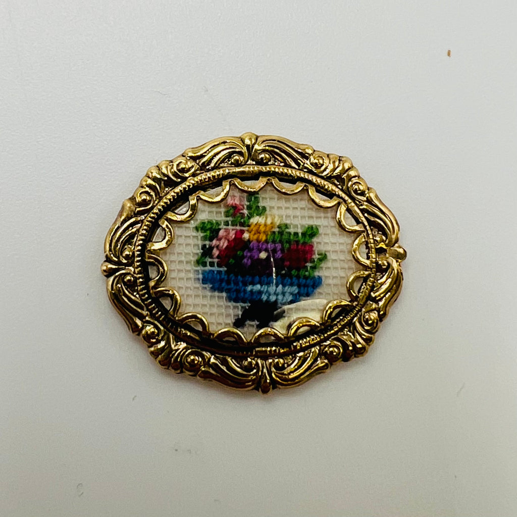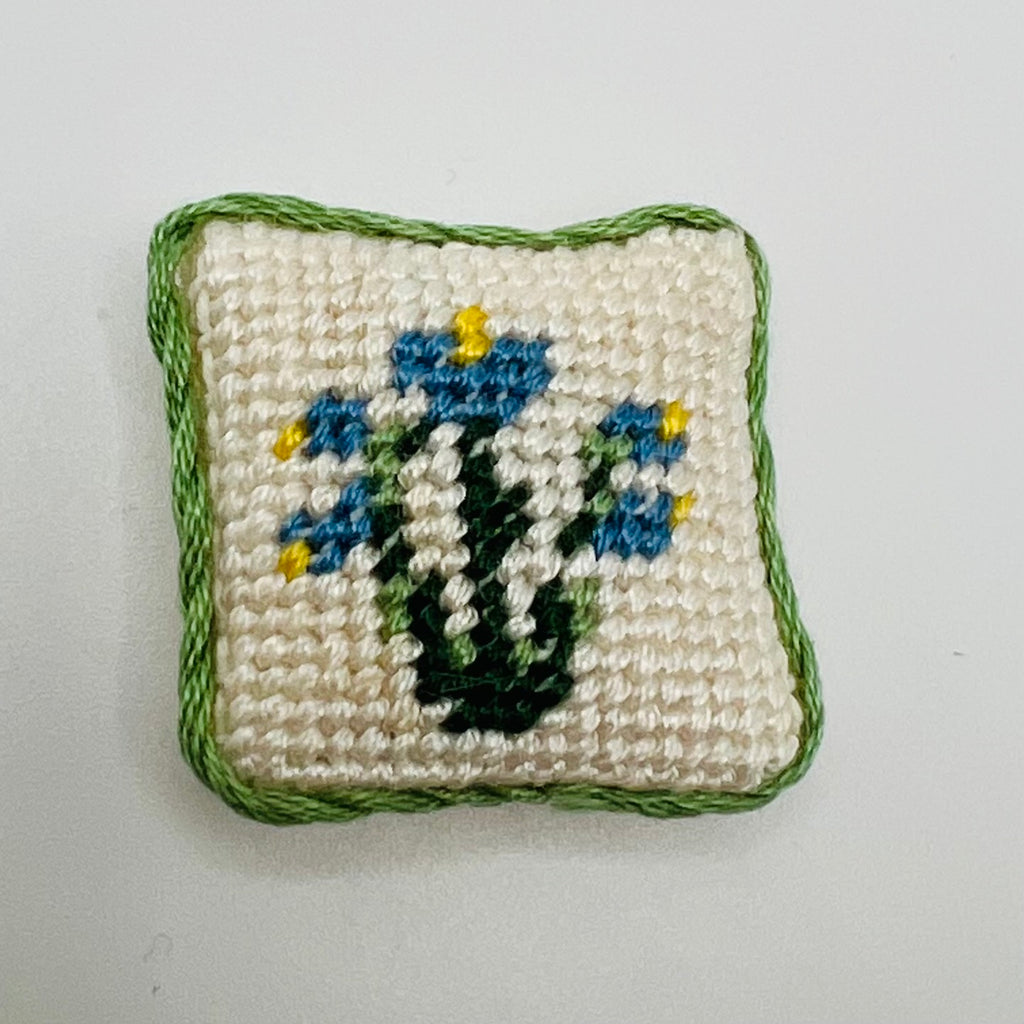 Needlepoint Pillow - Basket of Flowers - Handmade - 1/12 Scale Dollhouse Miniature