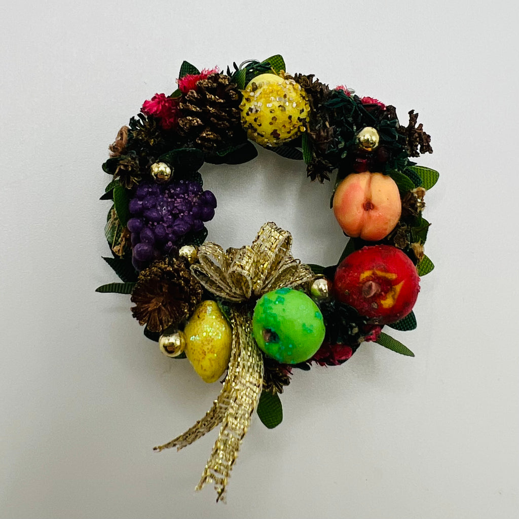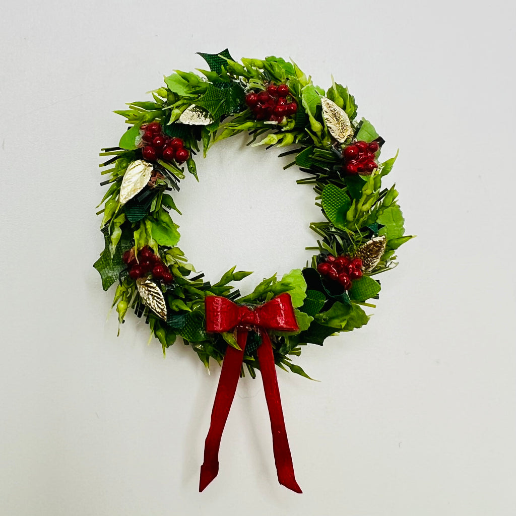 Christmas Wreath - Greenery/Pine Cones/Fruits and Bow - 1/12 Scale Dollhouse Miniature
