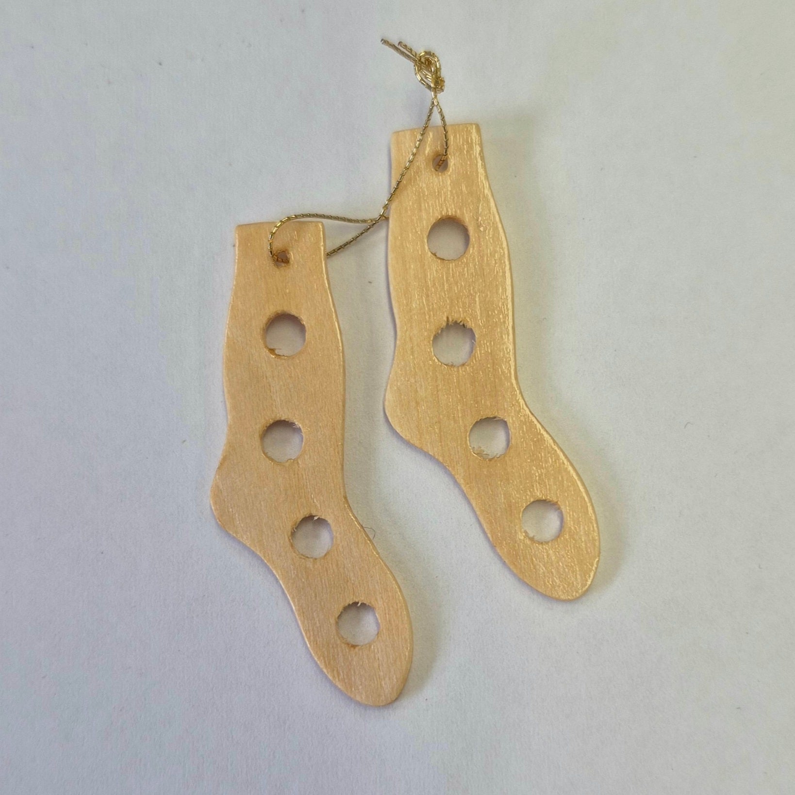 Pair of wooden sock stretchers. Nice accessory for a period kitchen. 1/12 scale miniature for your dollhouse or diorama. 1 1/2" long.