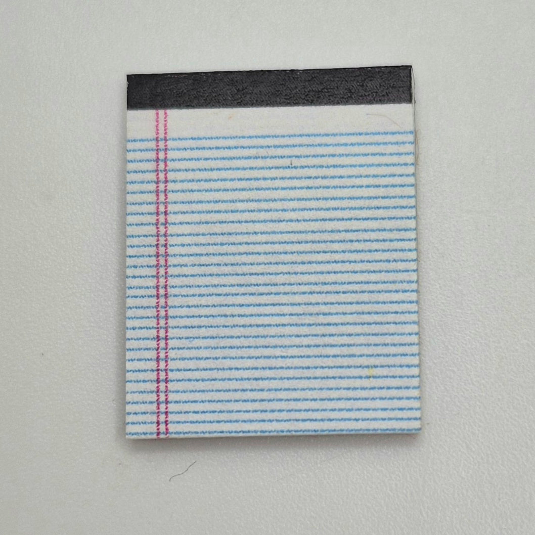 This is a lined notepad that will make an adorable accessory for your miniature office or craft room. Made of paper and thin cardboard. 15/16" tall x 3/4" wide x 1/16" thick.