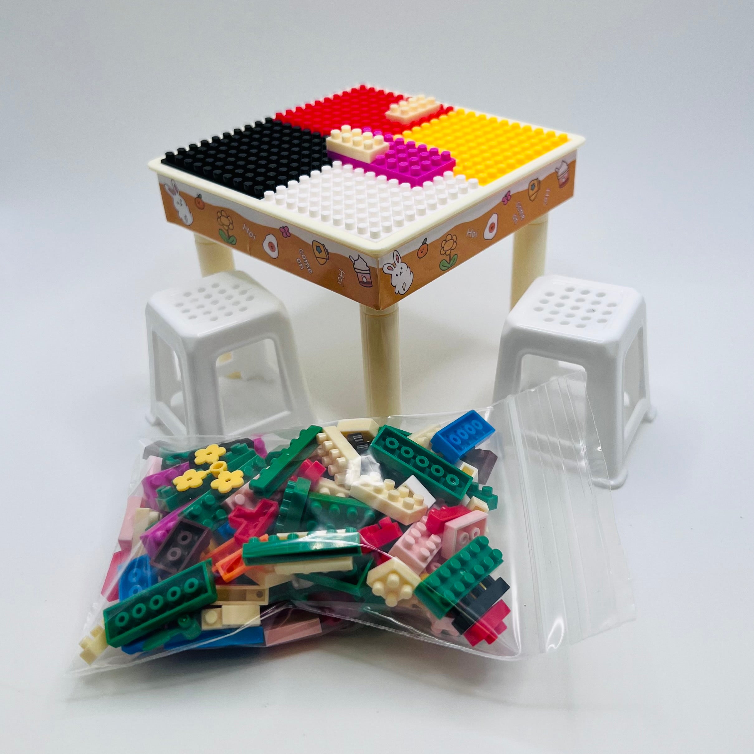 Miniature Building Bricks - Table, Stools and Bricks
