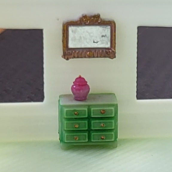 3D printed miniature kit from NS artisan, Ivette Orellana. 1/144 scale cabinet with mirror and ginger jar. A nice addition to a bedroom or hallway.